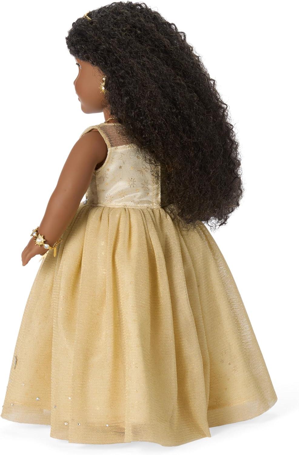 American Girl 2025 Glimmering Gold Holiday Collector Doll, with Brown Eyes, Long Curly Black Hair, Ages 8+