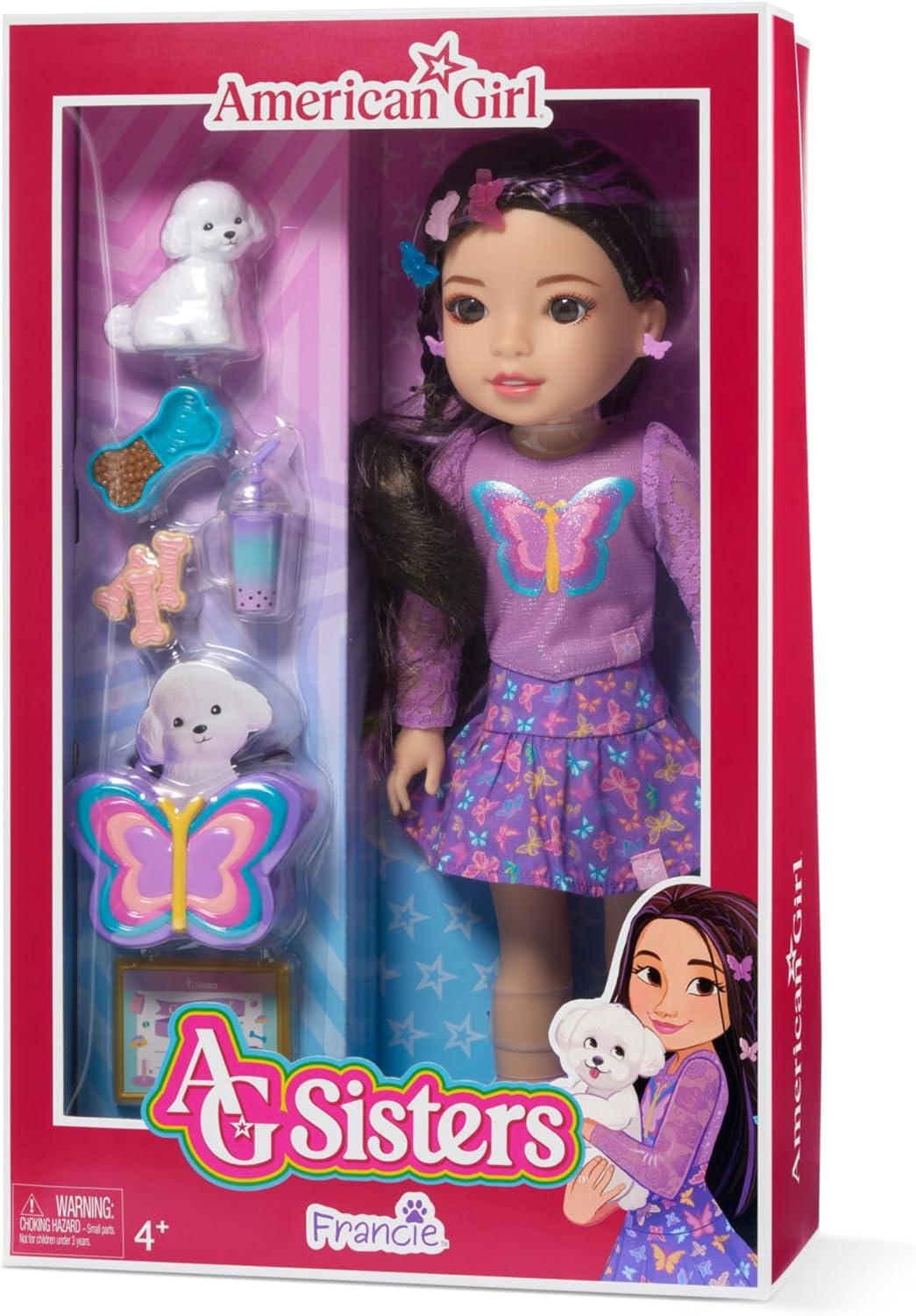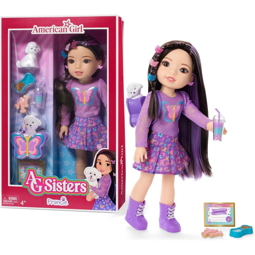 American Girl, AG Sisters Francie Doll, with Brown Eyes, Long Dark-Brown Hair with Purple Highlights, 14.5″, Ages 4+