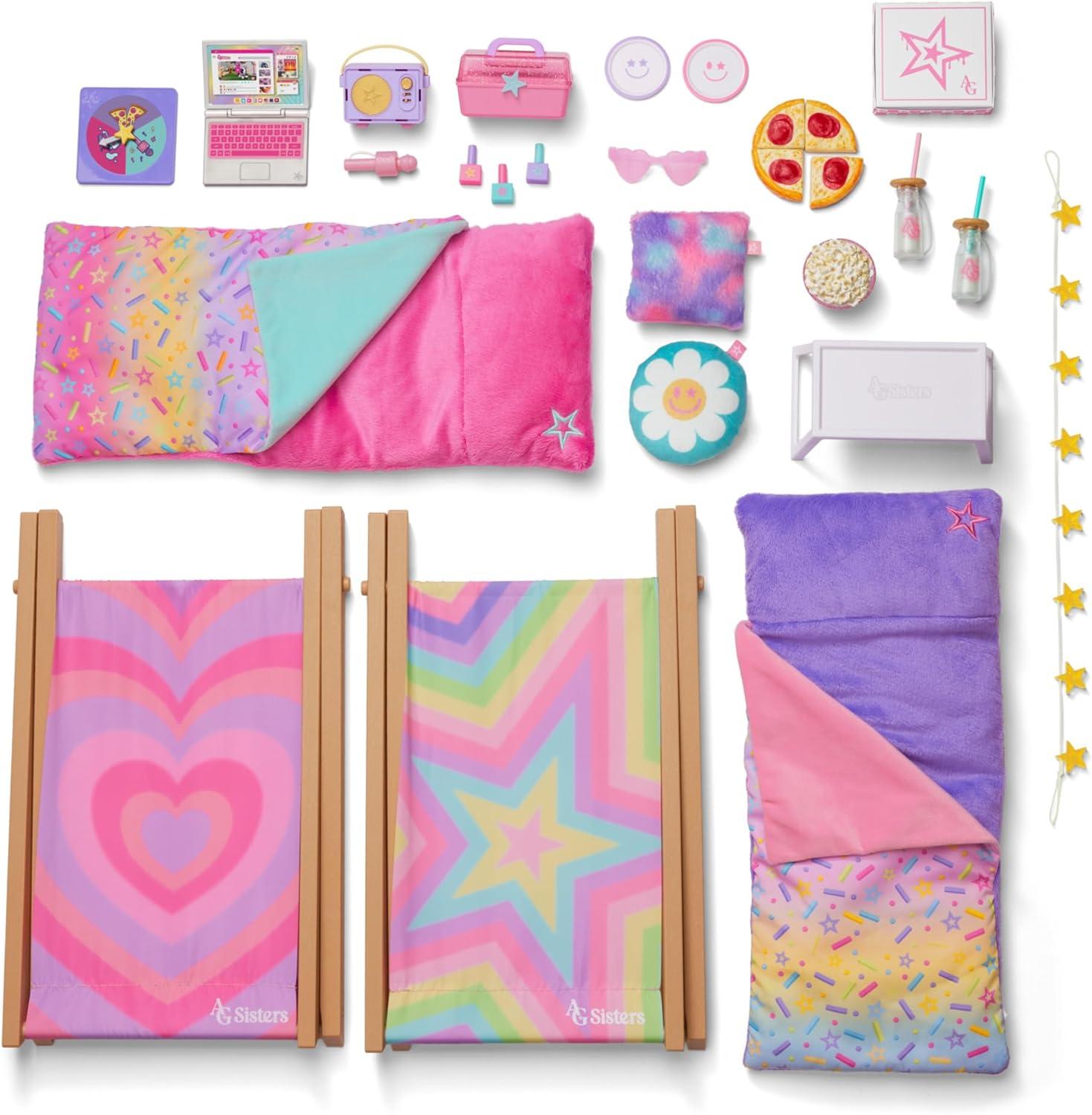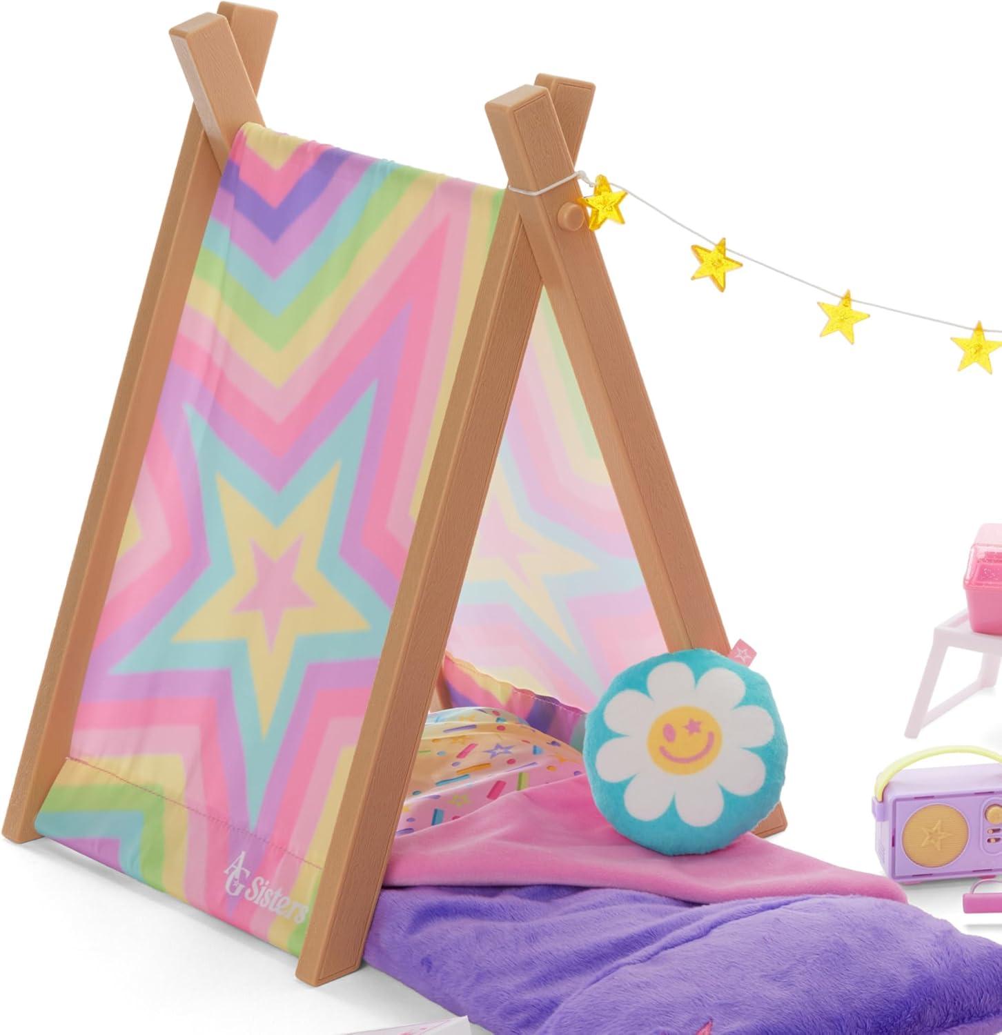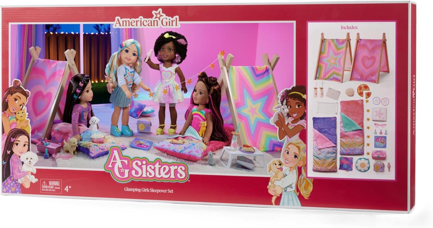 American Girl, AG Sisters Glamping Girls Sleepover Set, Doll Playset, for 14.5-inch Dolls, 28 pcs, for Ages 4+