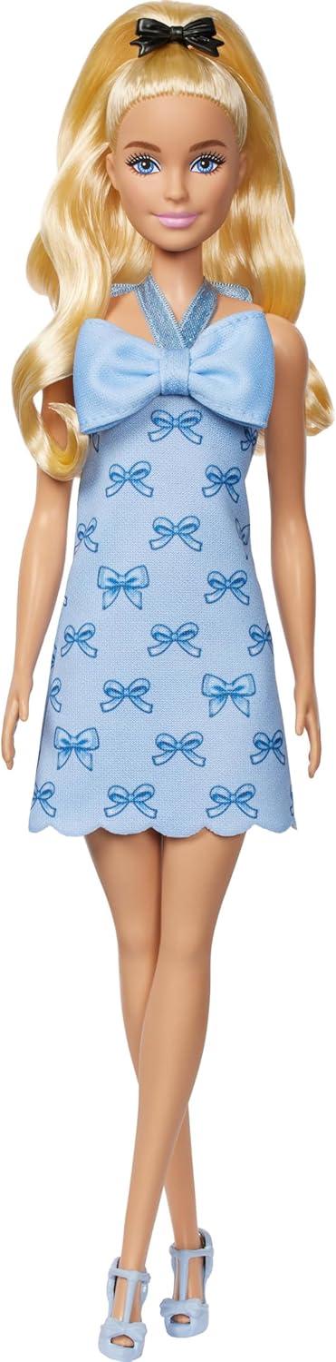 Barbie Fashionistas Doll #223 with Blonde Wavy Hair, Totally Hair-Inspired Dress & Accessories, 65th Anniversary Collectible Toy(Blue Bows Halter Dress)