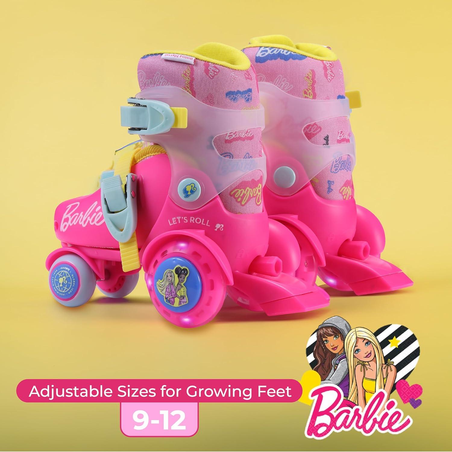 Barbie Kids Trainer Skates – Light Up Wheels, ABEC 5 Bearings, Durable PVC Material, Foam Shoe Lining, Perfect for Active Fun and Adventures, US Size 9-12