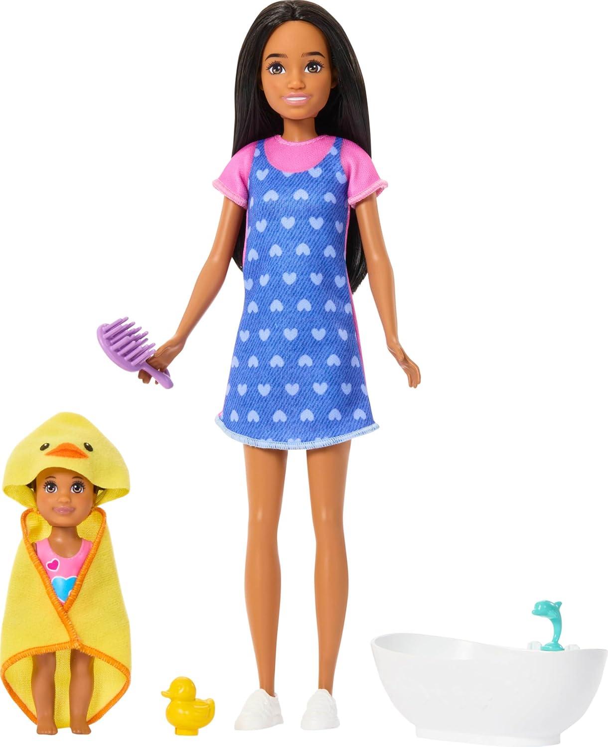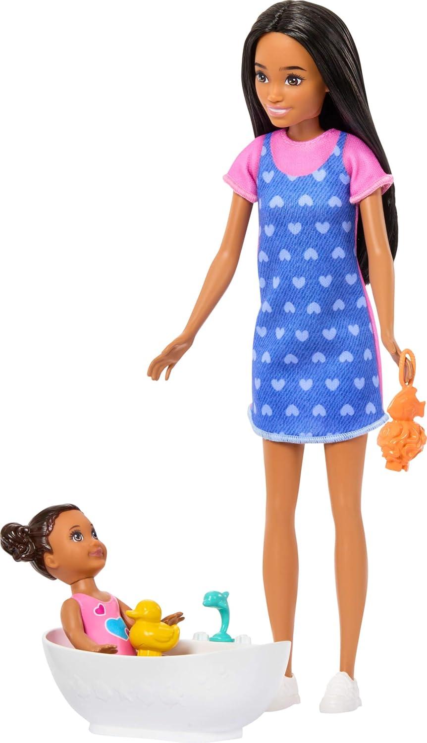 Barbie Skipper Babysitters, Inc. Playset with Brunette Doll, Brunette Toddler Doll, High Chair & 8 Accessories Including Food 2(Bath Friend)