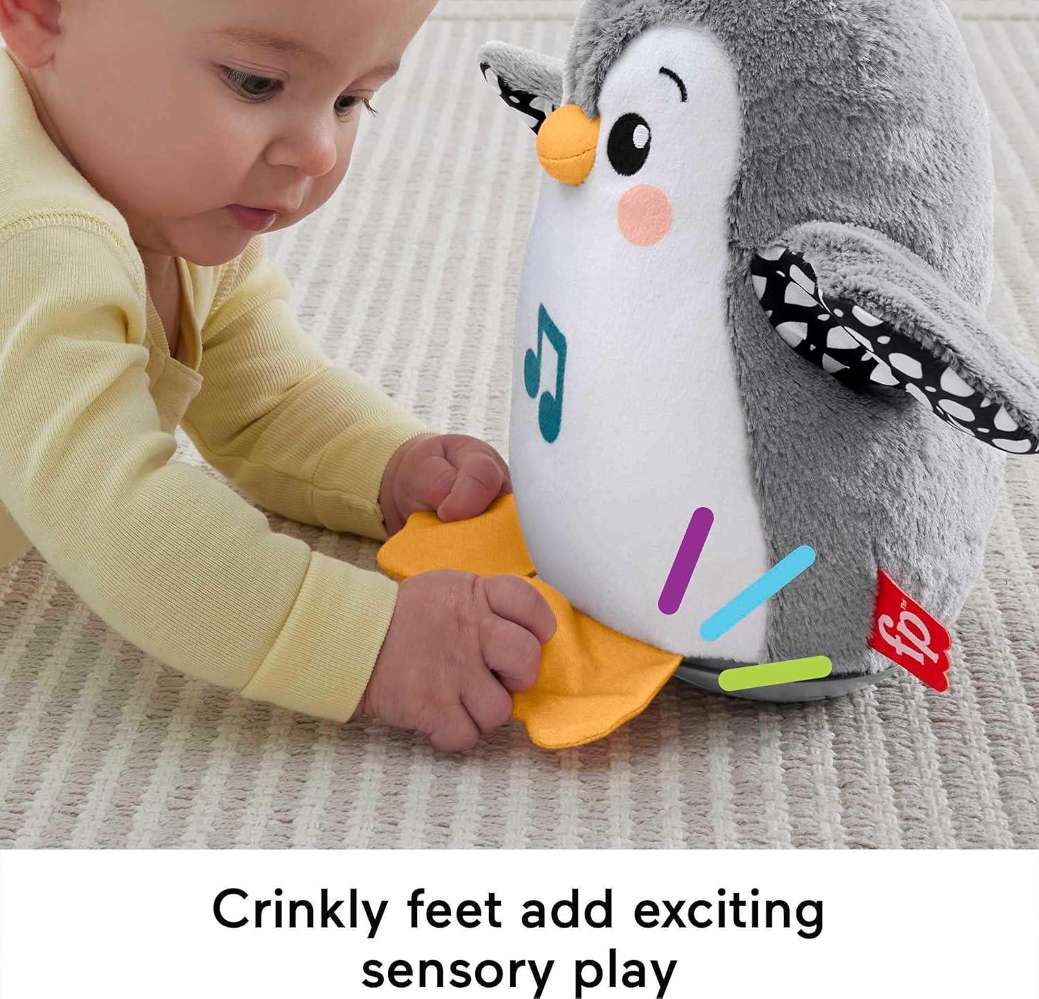 Fisher-Price Baby Tummy Time Toy Flap & Wobble Penguin, Plush with Music & Motion for Sensory Play Newborns Ages 0+ Months(Small)