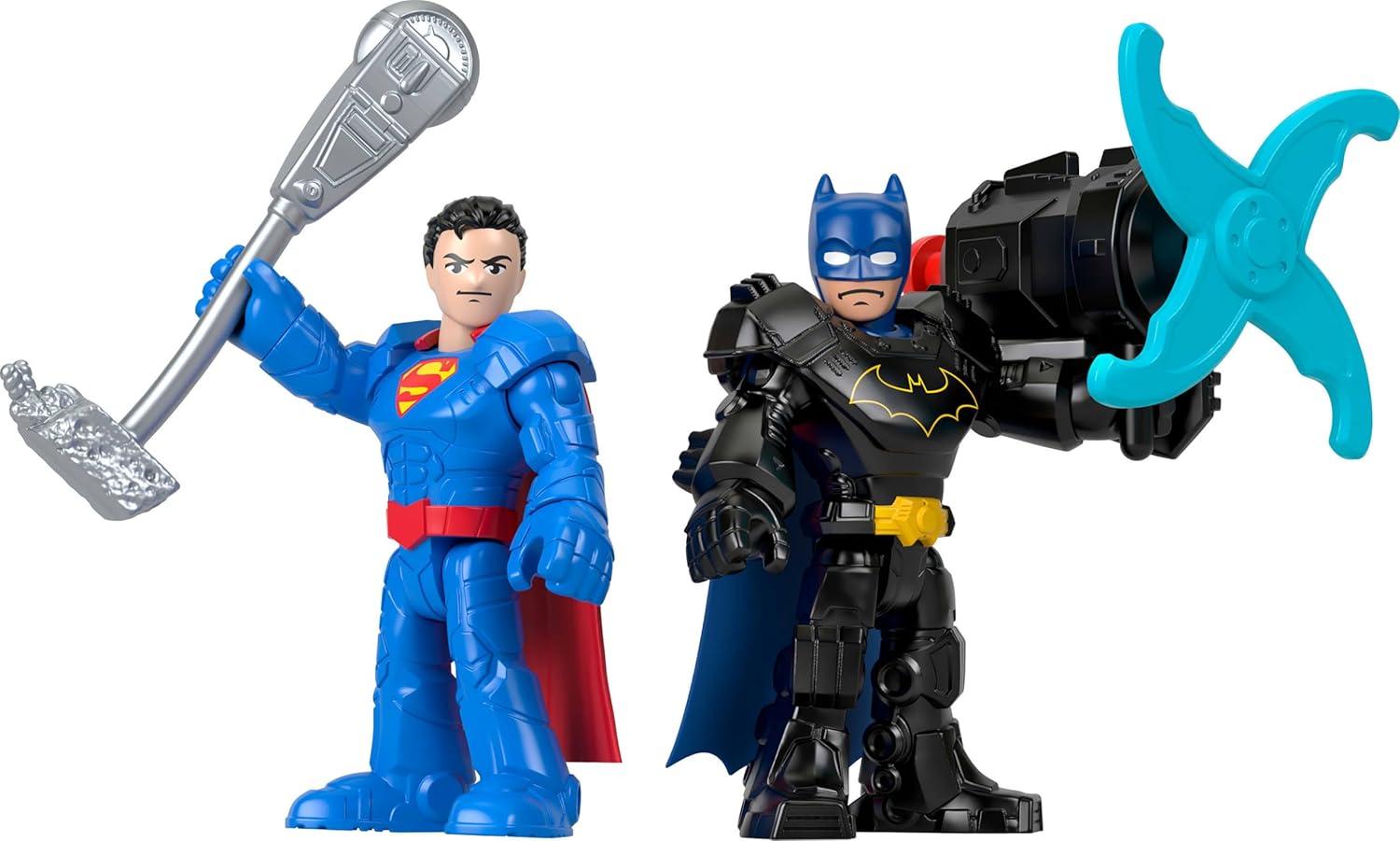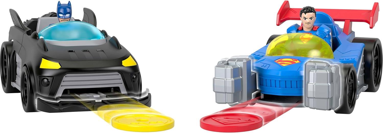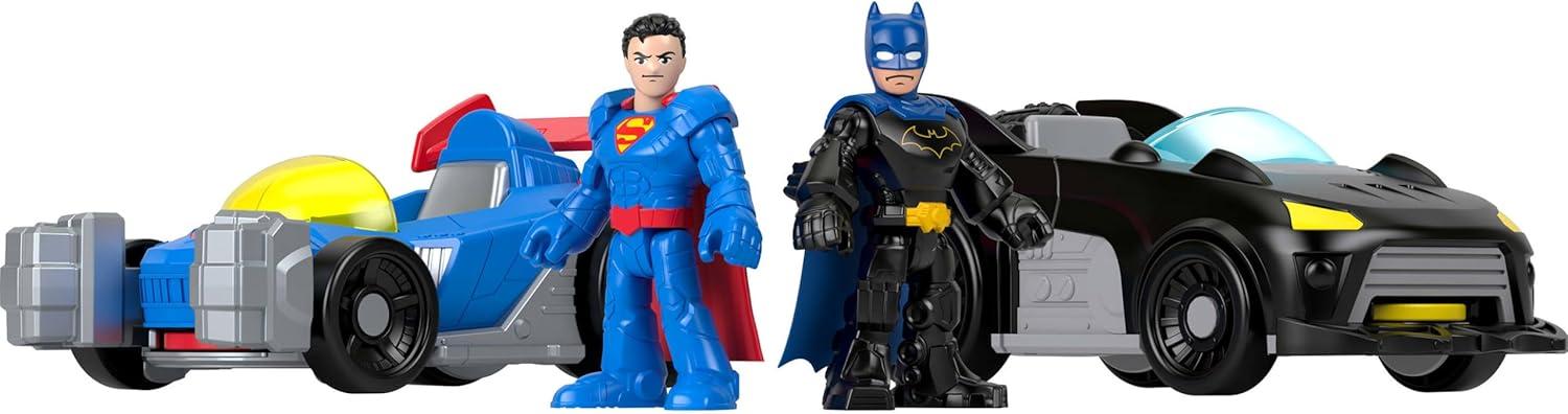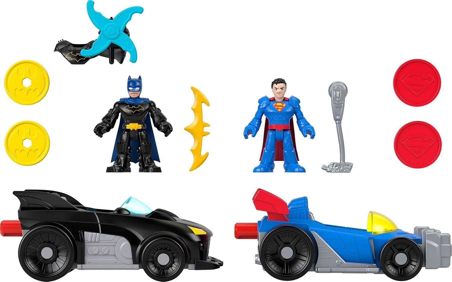 Inspired by DC Super Friends, this Imaginext Batmobile & Supermobile toy car set by Fisher-Price brings the action to life and lets kids drive the story with 2 Super Heroes, 2 vehicles and accessories!