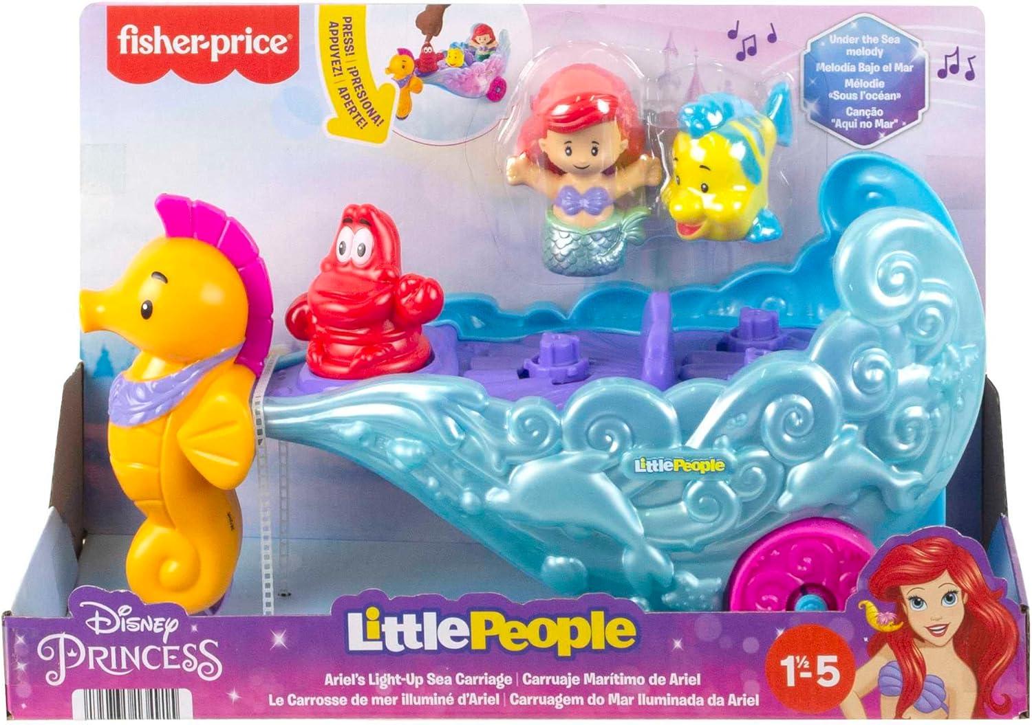 Fisher-Price Little People Toddler Toy Disney Princess Ariel’s Light-Up Sea Carriage Musical Vehicle for Pretend Play Ages 18+ Months(Ariel’s Sea Carriage)