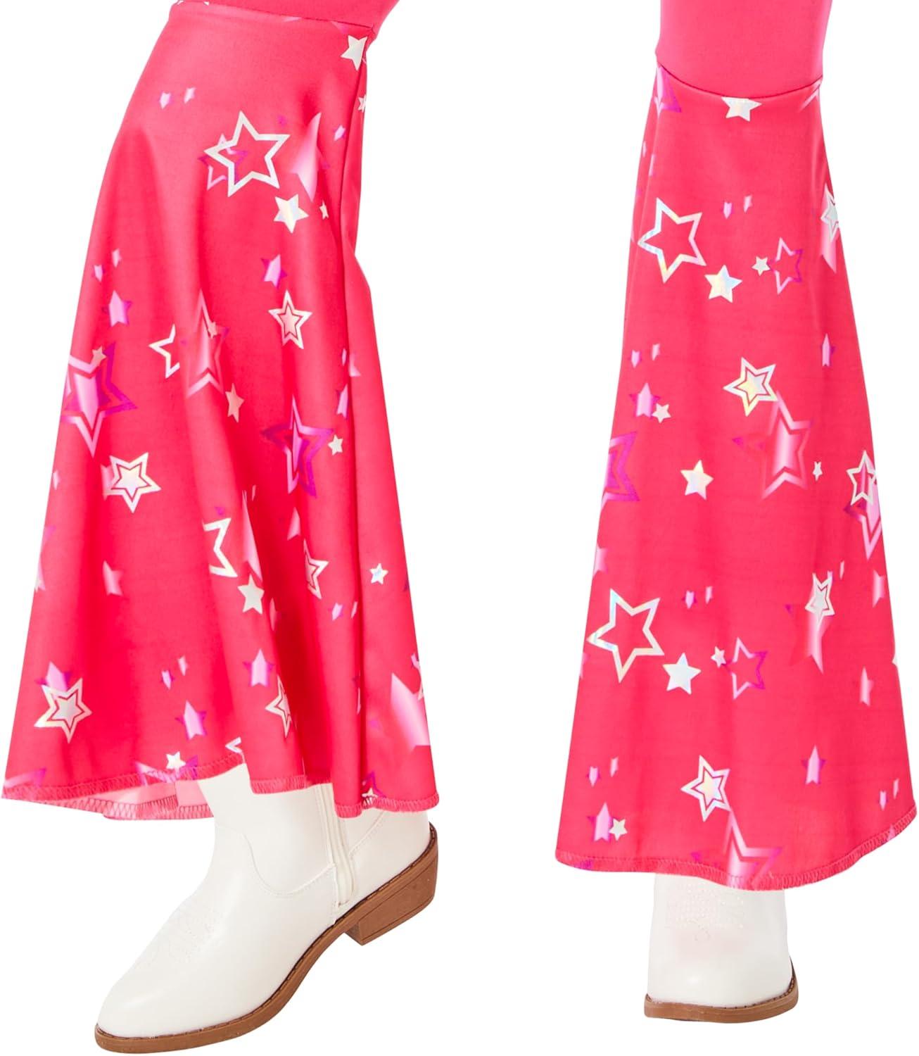 Step into Barbie's world in this bright pink Western costume! This sleeveless jumpsuit features flared pants with a playful print on bright pink fabric. A matching bandana ties the look together with ease. You'll feel ready to ride in this classic Barbie costume! This costume is ideal for parties, Halloween, and beyond. This costume is made of durable polyester for a look that's easy to wear and maintain for years to come. You will love to wear this Barbie costume on repeat during pretend play. Hand wash this Barbie Western costume and lay it flat to dry to keep it looking new. This Barbie Western costume is available in multiple sizes for a comfortable, flattering fit.
