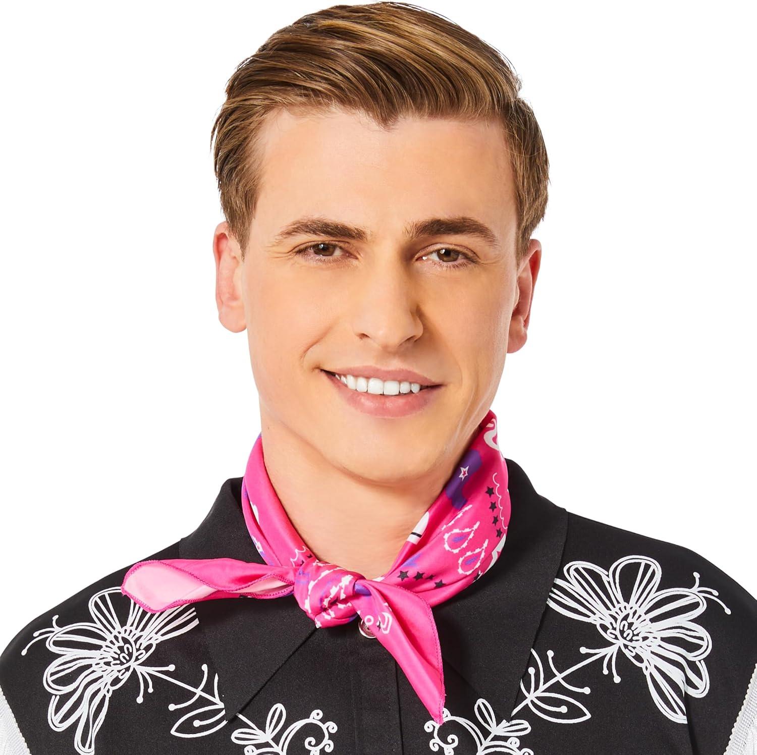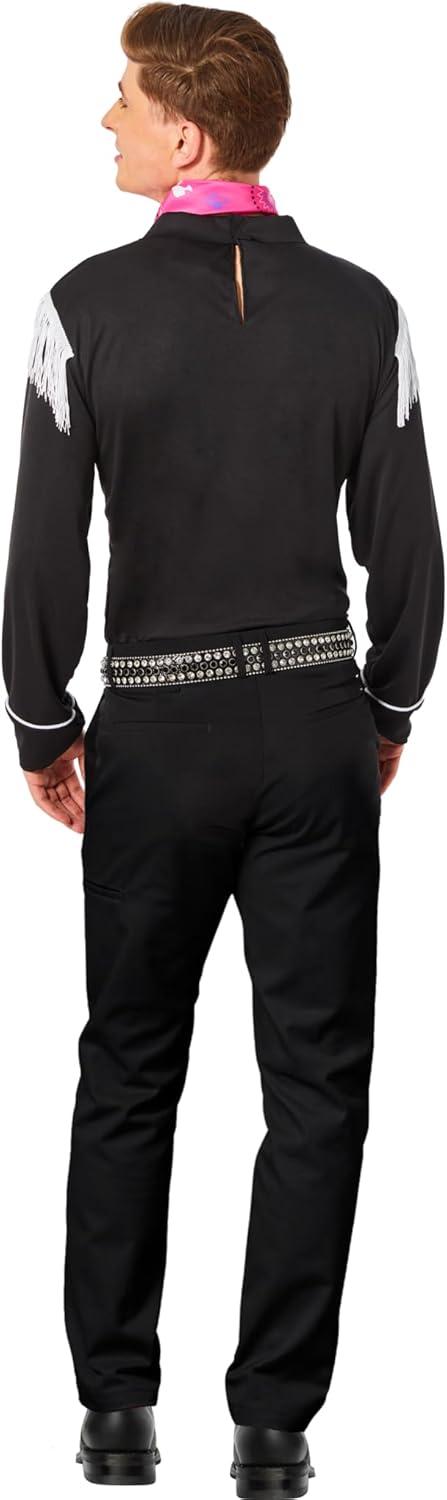 Become a real-life Ken doll in this officially licensed Barbie costume! This adult Ken cowboy costume includes a black and white cowboy shirt with long sleeves, a crisp collar, and decorative chest accents. An included pink bandana will make sure everyone knows you're Barbie's partner!