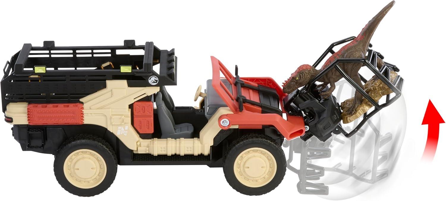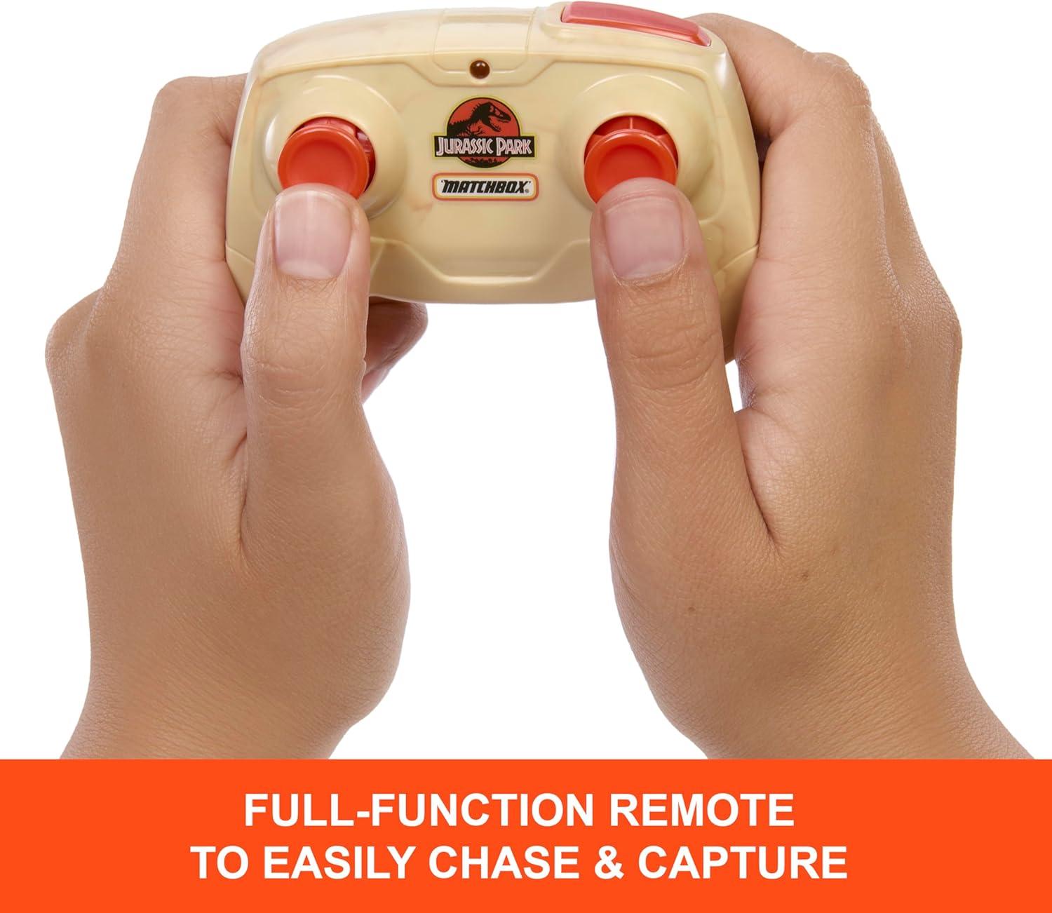 Matchbox RC Jurassic World Toy Truck, Remote-Control Battery-Operated Vehicle with Dinosaur Figure, Dino Catcher RC & Capture Cage for Transport