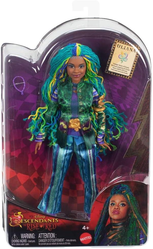 Conjure up sea magic with this doll of Uliana, Younger Sister of Ursula, from Disney Descendants: The Rise of Red! With long braids and signature outfit, this fashion doll looks just like her character in the movie as the teen sea witch with a mean girl streak. She bends at the arms, elbows, wrists and knees to dive into villainous mischief with her included seashell necklace. Makes a great gift for fans who will want to collect them all! Each sold separately, subject to availability. Doll cannot stand alone. Colors and decorations may vary.