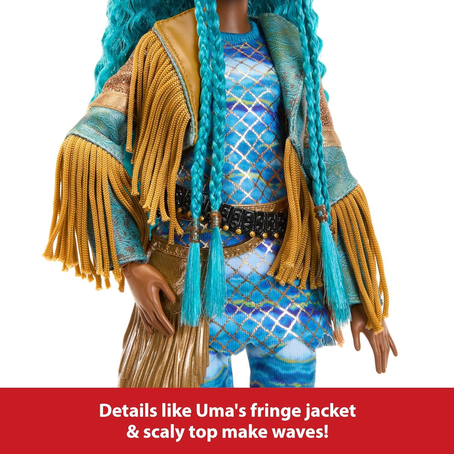 Walk the plank with this doll of Uma, Daughter of Ursula, from Disney Descendants: The Rise of Red! With her teal waves, long braids and signature outfit, this fashion doll looks just like her character from the movie. She bends at the arms, elbows, wrists and knees so she can lead her crew into thrilling adventures and pose like the natural-born leader she is. Makes a great gift for fans who will want to collect them all! Each sold separately, subject to availability. Doll cannot stand alone. Colors and decorations may vary.