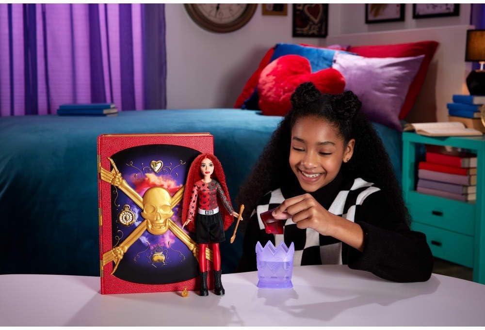 Mattel Disney Descendants: The Rise of Red – Red, Daughter of Queen of Hearts Doll & Playset, The Sorcerer’s Cookbook, Mix for Slime & Surprises(Multicolor)