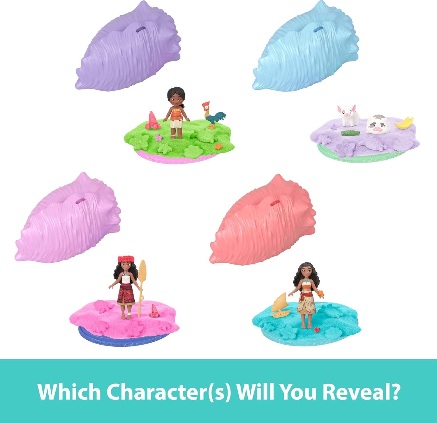 Mattel Disney Moana Surprise Small Doll or Animal Figures with Shell Playset, Moldable Sand & 3 Accessories, Inspired by Movie (Characters May Vary)