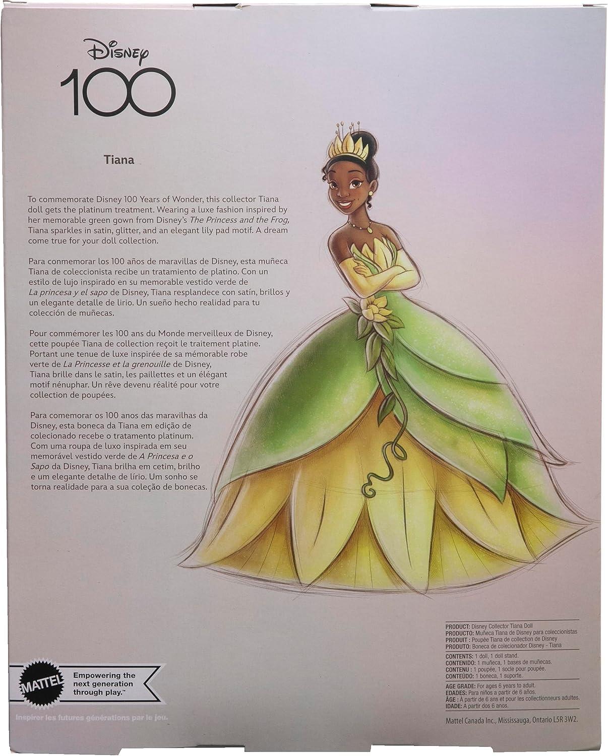 Mattel Disney Princess Toys, Collector Tiana Doll Celebrating Disney 100 Years of Wonder, Inspired by the Movie The Princess & The Frog
