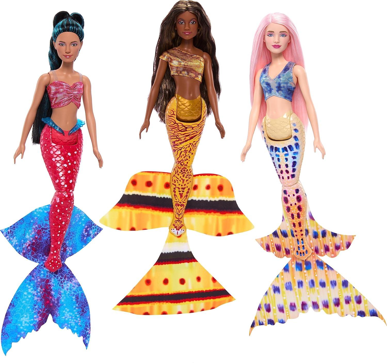 It’s a family reunion with all seven mermaid sisters from Disney’s exciting theatrical release, The Little Mermaid — Caspia, Indira, Perla, Karina, Mala, Tamika, and Ariel fashion dolls – together in this one Ultimate Ariel and Sisters set! Each posable mermaid doll has a unique print decorating her removable top and gorgeous tail. Each sister also has their own hairstyle like Ariel’s signature long red hair. With the siblings all together, it’s an instant collection fans can use to play and display their own adventures above or below the waves! Dolls cannot stand alone. Colors and decorations may vary.
