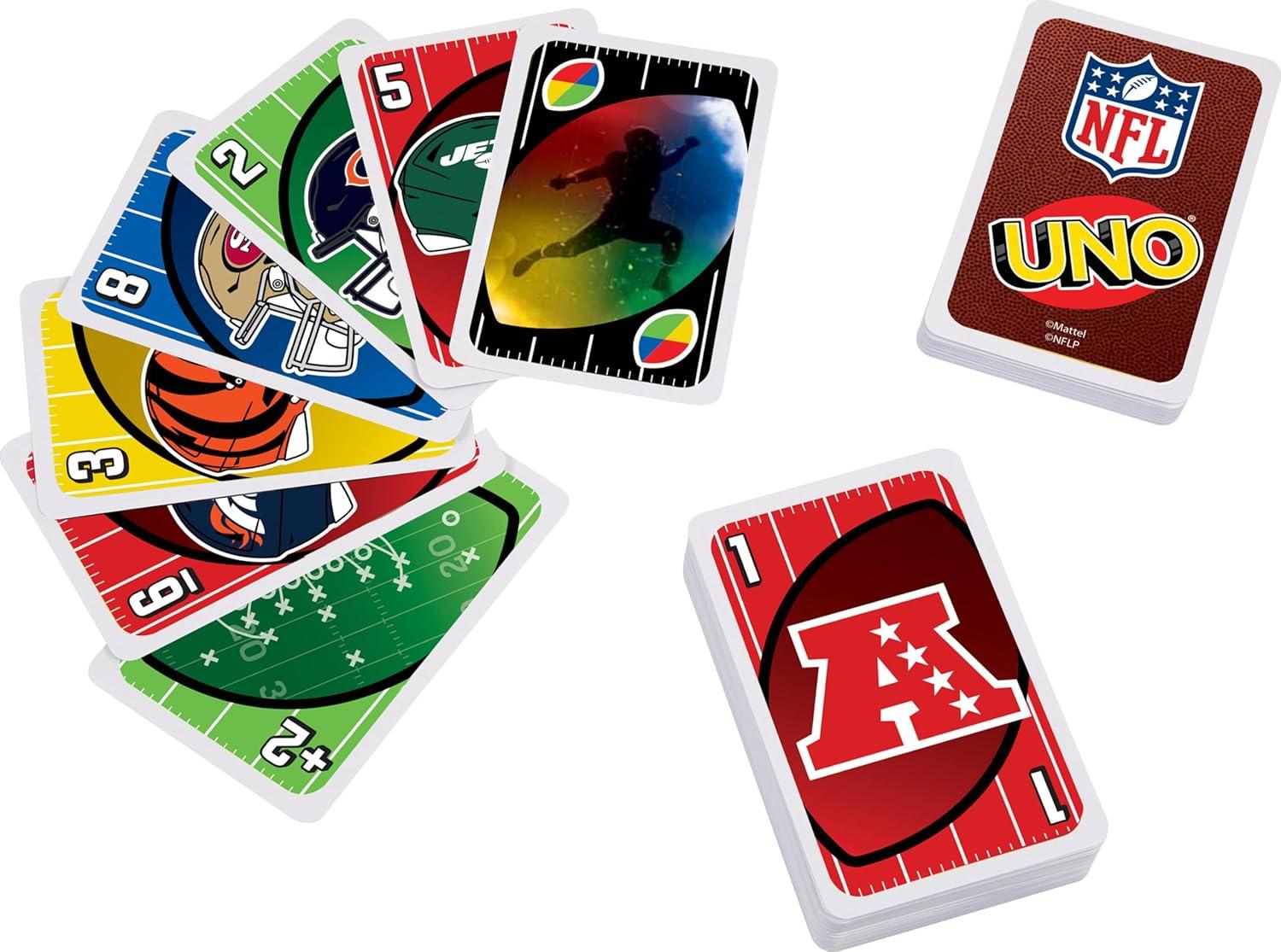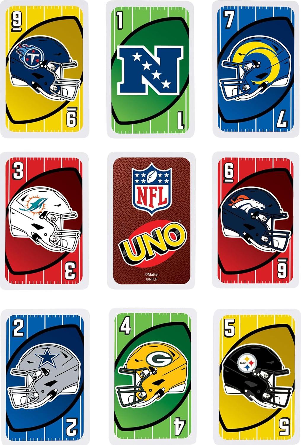 Mattel Games UNO Card Game, Gifts for Kids and Family Night, Themed to Minecraft Video Game, Travel Games, Storage Tin Box (Amazon Exclusive)(UNO NFL)
