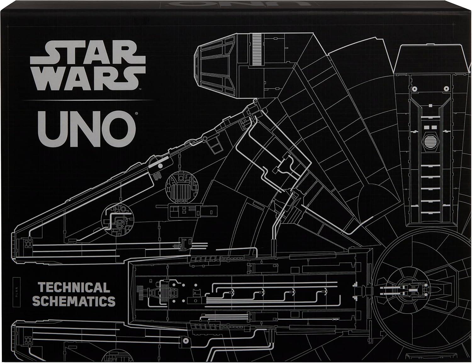 Mattel Games UNO Star Wars Technical Schematics Card Game for Kids & Adults with Blueprints of Space Stations, Ships & Droids