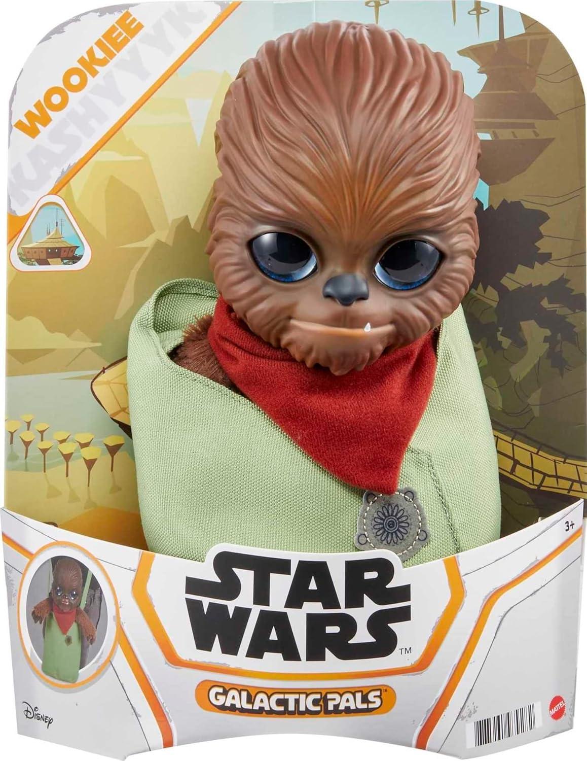Mattel Star Wars Galactic Pals Plush Toy, Rodian 11-inch Soft Doll Set with Carrier & Personality Profile Card for Personalized Experience(Wookiee)