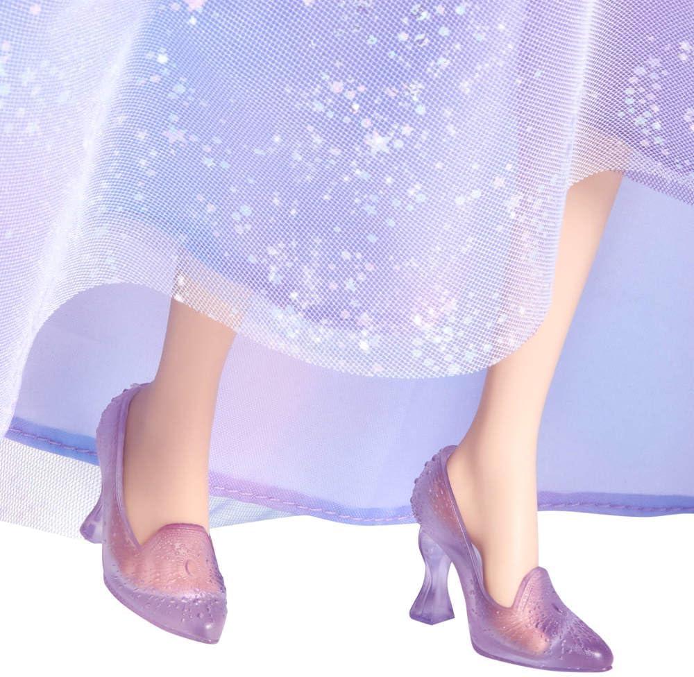She dazzles in a true-to-movie premium organza gown with flutter shoulders and shimmery long sleeves.