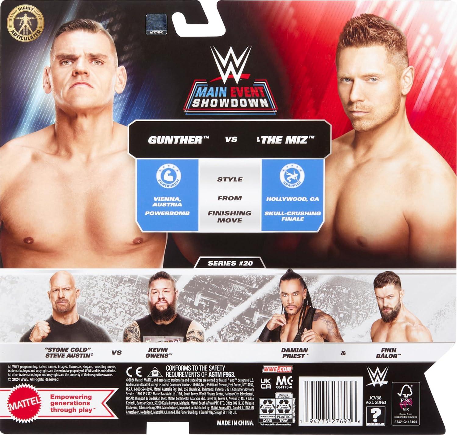 Mattel WWE Main Event Championship Showdown 2-Pack Action Figures & Accessory, Series #20 Gunther & The Miz Collectible Set