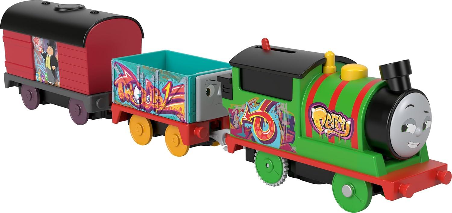Thomas & Friends Motorized Toy Train, Wobbly Cake Thomas Engine with Cargo Cars & Pieces for Pretend Play Preschool Kids Ages 3+ Years(New Percy)
